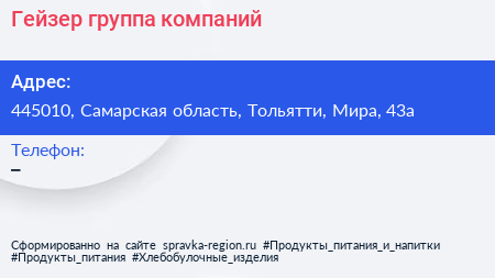 Гейзер, группа компаний по адресу 445010, Самарская область, Тольятти, Мира, 43а в дальнейшем Организация, размещена в следующих категориях: