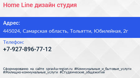 Home Line, дизайн-студия по адресу 445024, Самарская область, Тольятти, Юбилейная, 2г в дальнейшем Организация, размещена в следующих категориях: