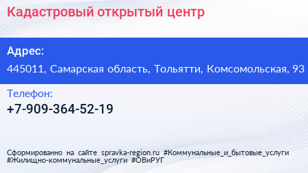 Кадастровый открытый центр по адресу 445011, Самарская область, Тольятти, Комсомольская, 93 в дальнейшем Организация, размещена в следующих категориях: