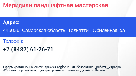 Меридиан, ландшафтная мастерская по адресу 445036, Самарская область, Тольятти, Юбилейная, 5а в дальнейшем Организация, размещена в следующих категориях: