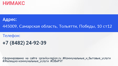 НИМАКС по адресу 445009, Самарская область, Тольятти, Победы, 10 ст12 в дальнейшем Организация, размещена в следующих категориях:
