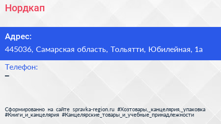 Нордкап по адресу 445036, Самарская область, Тольятти, Юбилейная, 1а в дальнейшем Организация, размещена в следующих категориях: