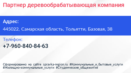 Партнер, деревообрабатывающая компания по адресу 445022, Самарская область, Тольятти, Базовая, 38 в дальнейшем Организация, размещена в следующих категориях: