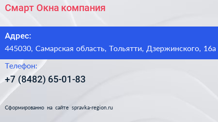 Смарт Окна, компания по адресу 445030, Самарская область, Тольятти, Дзержинского, 16а в дальнейшем Организация, размещена в следующих категориях: