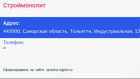 Строймонолит по адресу 445000, Самарская область, Тольятти, Индустриальная, 12 в дальнейшем Организация, размещена в следующих категориях:
