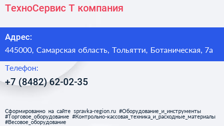 ТехноСервис-Т, компания по адресу 445000, Самарская область, Тольятти, Ботаническая, 7а в дальнейшем Организация, размещена в следующих категориях: