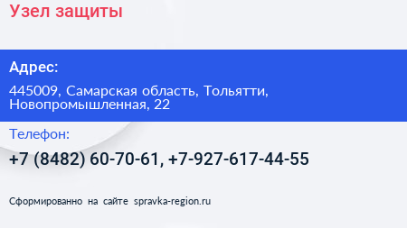 Узел защиты по адресу 445009, Самарская область, Тольятти, Новопромышленная, 22 в дальнейшем Организация, размещена в следующих категориях: