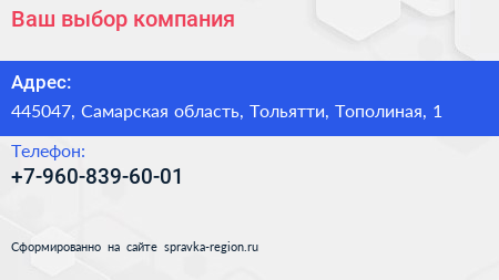 Ваш выбор, компания по адресу 445047, Самарская область, Тольятти, Тополиная, 1 в дальнейшем Организация, размещена в следующих категориях: