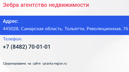 Зебра, агентство недвижимости по адресу 445028, Самарская область, Тольятти, Революционная, 76 в дальнейшем Организация, размещена в следующих категориях: