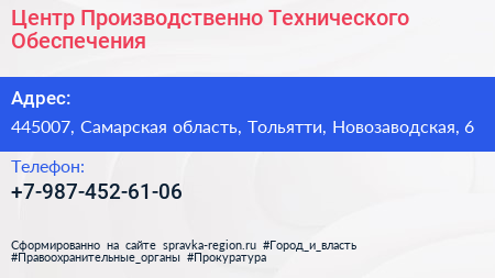 Центр Производственно-Технического Обеспечения по адресу 445007, Самарская область, Тольятти, Новозаводская, 6 в дальнейшем Организация, размещена в следующих категориях: