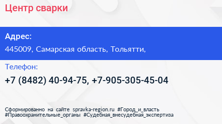 Центр сварки по адресу 445009, Самарская область, Тольятти, в дальнейшем Организация, размещена в следующих категориях: