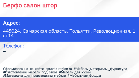 Берфо, салон штор по адресу 445024, Самарская область, Тольятти, Революционная, 1 ст14 в дальнейшем Организация, размещена в следующих категориях: