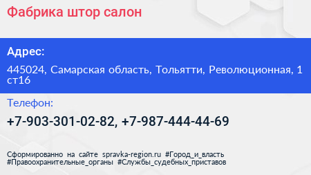 Фабрика штор, салон по адресу 445024, Самарская область, Тольятти, Революционная, 1 ст16 в дальнейшем Организация, размещена в следующих категориях: