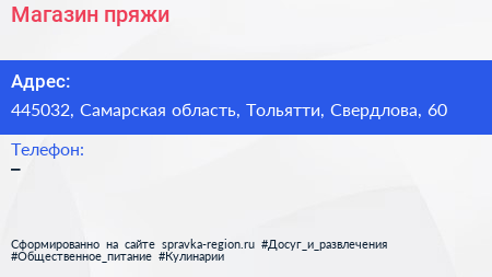 Магазин пряжи по адресу 445032, Самарская область, Тольятти, Свердлова, 60 в дальнейшем Организация, размещена в следующих категориях: