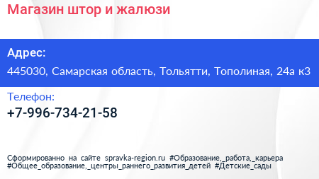 Магазин штор и жалюзи по адресу 445030, Самарская область, Тольятти, Тополиная, 24а к3 в дальнейшем Организация, размещена в следующих категориях: