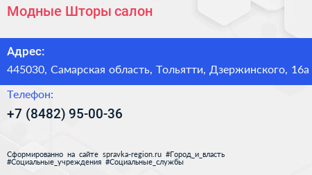 Модные Шторы, салон по адресу 445030, Самарская область, Тольятти, Дзержинского, 16а в дальнейшем Организация, размещена в следующих категориях: