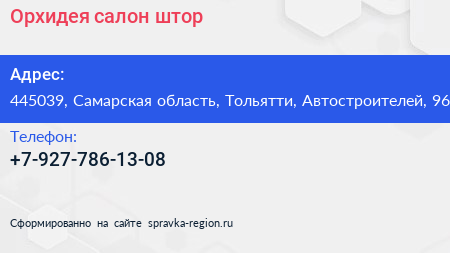 Орхидея, салон штор по адресу 445039, Самарская область, Тольятти, Автостроителей, 96 в дальнейшем Организация, размещена в следующих категориях: