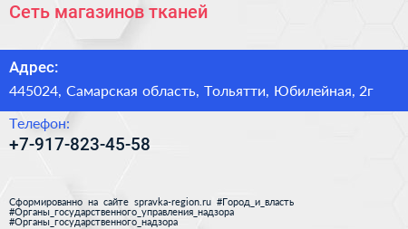 Сеть магазинов тканей по адресу 445024, Самарская область, Тольятти, Юбилейная, 2г в дальнейшем Организация, размещена в следующих категориях: