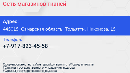 Сеть магазинов тканей по адресу 445015, Самарская область, Тольятти, Никонова, 15 в дальнейшем Организация, размещена в следующих категориях:
