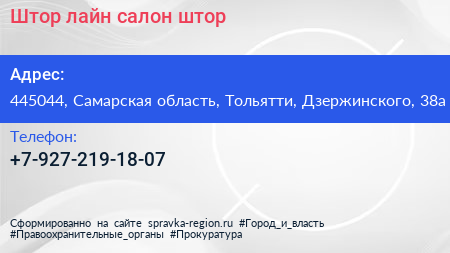 Штор лайн, салон штор по адресу 445044, Самарская область, Тольятти, Дзержинского, 38а в дальнейшем Организация, размещена в следующих категориях: