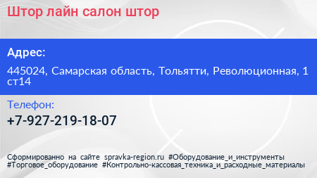 Штор лайн, салон штор по адресу 445024, Самарская область, Тольятти, Революционная, 1 ст14 в дальнейшем Организация, размещена в следующих категориях: