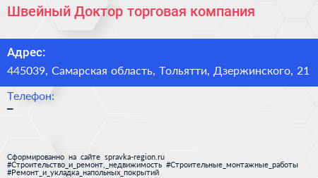 Швейный Доктор, торговая компания по адресу 445039, Самарская область, Тольятти, Дзержинского, 21 в дальнейшем Организация, размещена в следующих категориях: