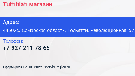 Tuttifilati, магазин по адресу 445026, Самарская область, Тольятти, Революционная, 52 в дальнейшем Организация, размещена в следующих категориях: