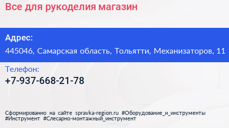 Все для рукоделия, магазин по адресу 445046, Самарская область, Тольятти, Механизаторов, 11 в дальнейшем Организация, размещена в следующих категориях:
