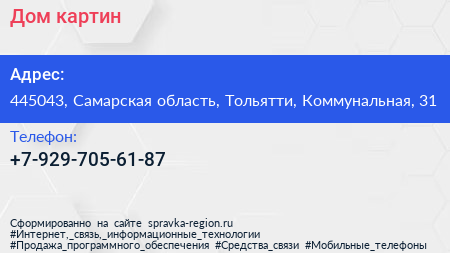 Дом картин по адресу 445043, Самарская область, Тольятти, Коммунальная, 31 в дальнейшем Организация, размещена в следующих категориях: