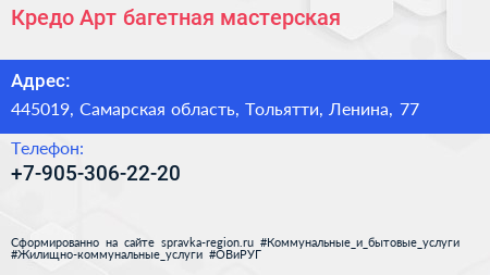 Кредо Арт, багетная мастерская по адресу 445019, Самарская область, Тольятти, Ленина, 77 в дальнейшем Организация, размещена в следующих категориях: