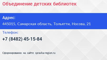 Объединение детских библиотек по адресу 445015, Самарская область, Тольятти, Носова, 21 в дальнейшем Организация, размещена в следующих категориях: