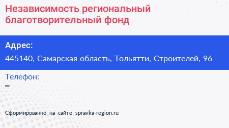 Независимость, региональный благотворительный фонд по адресу 445140, Самарская область, Тольятти, Строителей, 96 в дальнейшем Организация, размещена в следующих категориях: