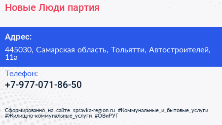Новые Люди, партия по адресу 445030, Самарская область, Тольятти, Автостроителей, 11а в дальнейшем Организация, размещена в следующих категориях: