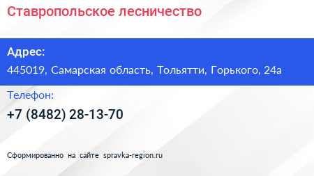 Ставропольское лесничество по адресу 445019, Самарская область, Тольятти, Горького, 24а в дальнейшем Организация, размещена в следующих категориях: