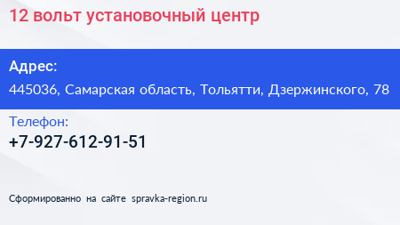 12 вольт, установочный центр по адресу 445036, Самарская область, Тольятти, Дзержинского, 78 в дальнейшем Организация, размещена в следующих категориях: