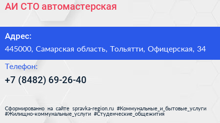 АИ-СТО, автомастерская по адресу 445000, Самарская область, Тольятти, Офицерская, 34 в дальнейшем Организация, размещена в следующих категориях: