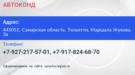 АВТОКОНД по адресу 445051, Самарская область, Тольятти, Маршала Жукова, 3а в дальнейшем Организация, размещена в следующих категориях: