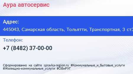 Аура, автосервис по адресу 445043, Самарская область, Тольятти, Транспортная, 3 ст3 в дальнейшем Организация, размещена в следующих категориях: