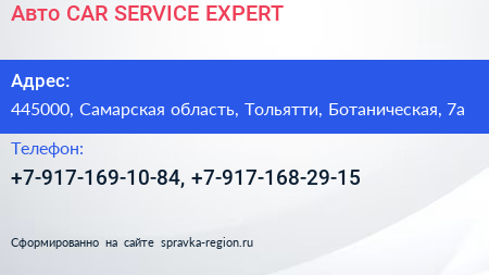 Авто CAR SERVICE EXPERT по адресу 445000, Самарская область, Тольятти, Ботаническая, 7а в дальнейшем Организация, размещена в следующих категориях: