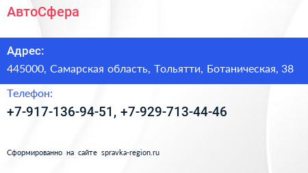 АвтоСфера по адресу 445000, Самарская область, Тольятти, Ботаническая, 38 в дальнейшем Организация, размещена в следующих категориях: