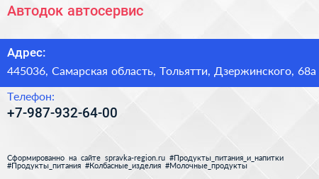Автодок, автосервис по адресу 445036, Самарская область, Тольятти, Дзержинского, 68а в дальнейшем Организация, размещена в следующих категориях: