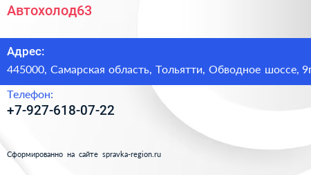 Автохолод63 по адресу 445000, Самарская область, Тольятти, Обводное шоссе, 9г в дальнейшем Организация, размещена в следующих категориях: