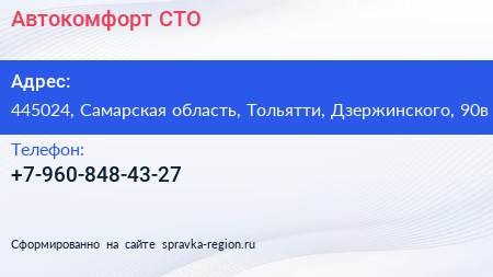 Автокомфорт, СТО по адресу 445024, Самарская область, Тольятти, Дзержинского, 90в в дальнейшем Организация, размещена в следующих категориях: