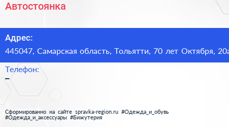 Автостоянка по адресу 445047, Самарская область, Тольятти, 70 лет Октября, 20а в дальнейшем Организация, размещена в следующих категориях: