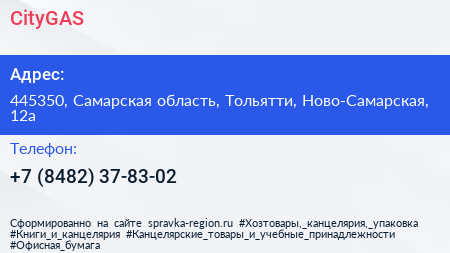 CityGAS по адресу 445350, Самарская область, Тольятти, Ново-Самарская, 12а в дальнейшем Организация, размещена в следующих категориях: