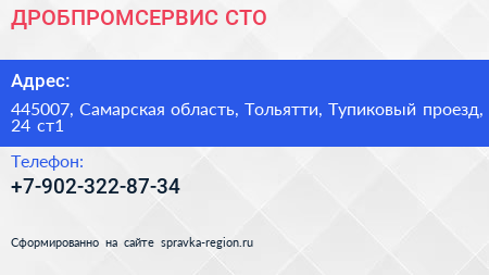 ДРОБПРОМСЕРВИС, СТО по адресу 445007, Самарская область, Тольятти, Тупиковый проезд, 24 ст1 в дальнейшем Организация, размещена в следующих категориях: