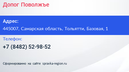 Допог-Поволжъе по адресу 445007, Самарская область, Тольятти, Базовая, 1 в дальнейшем Организация, размещена в следующих категориях: