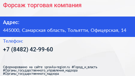 Форсаж, торговая компания по адресу 445000, Самарская область, Тольятти, Офицерская, 14 в дальнейшем Организация, размещена в следующих категориях: