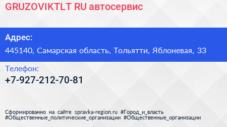 GRUZOVIKTLT.RU, автосервис по адресу 445140, Самарская область, Тольятти, Яблоневая, 33 в дальнейшем Организация, размещена в следующих категориях: