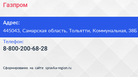 Газпром по адресу 445043, Самарская область, Тольятти, Коммунальная, 38Б в дальнейшем Организация, размещена в следующих категориях: